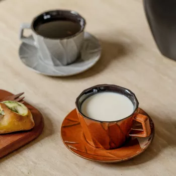 Vintage Brown Ceramic Coffee Cup & Saucer Set